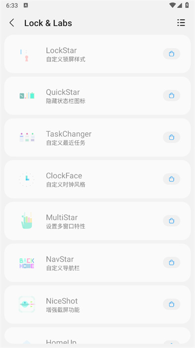 lock&labs:整合god lock和galaxy labs的功能,并可以進行排序、已安裝的靠前排列,可以安裝、卸載、長按添加快捷方式到桌面