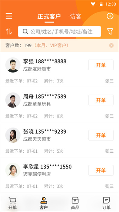 3、統(tǒng)計(jì)報(bào)表,統(tǒng)計(jì)跟進(jìn)情況,進(jìn)步客戶、成交客戶、客戶分布一手掌握。