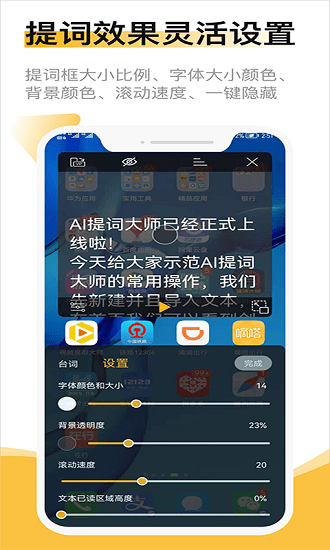 2、提詞設(shè)置:背景透明度,字體、播放速度、顏色等多方位自定義設(shè)置,滿足各場(chǎng)景需求。