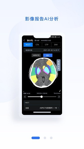 本產(chǎn)品是一款應用于急性缺血性腦卒中急救流程的人工智能(AI)App,服務于各級醫(yī)院急診綠通醫(yī)生,旨在通過AI技術、互聯(lián)網(wǎng)技術為腦卒中診療業(yè)務賦能,從而提升急救效率。產(chǎn)品核心能力包括AI影像判讀、輔助決策、輔助治療、自動化質(zhì)控管理。