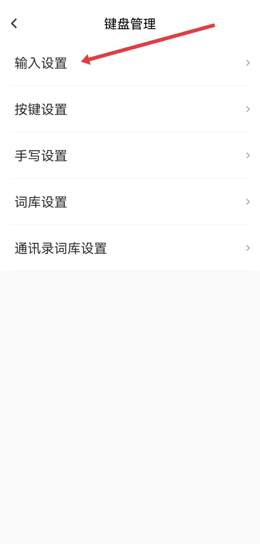 2、在鍵盤(pán)管理頁(yè)面,點(diǎn)擊輸入設(shè)置的選項(xiàng),進(jìn)入輸入設(shè)置頁(yè)。