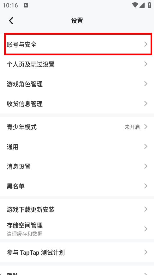 2、在設(shè)置界面中找到并點擊賬號與安全選項,進(jìn)入賬號安全相關(guān)設(shè)置頁面。