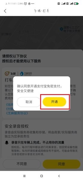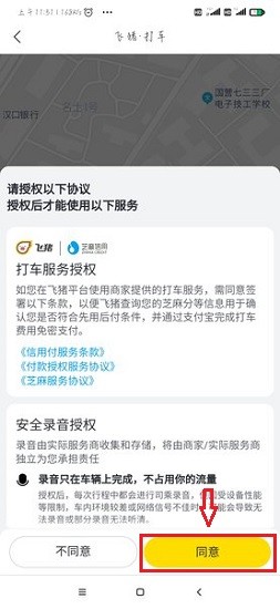 3、進(jìn)入打車功能以后需要用戶同意一些協(xié)議授權(quán)