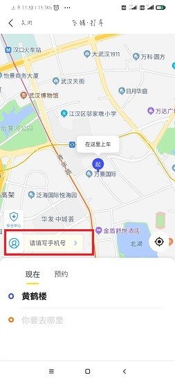 5、進(jìn)入打車頁(yè)面以后,需要用戶綁定電話號(hào)碼