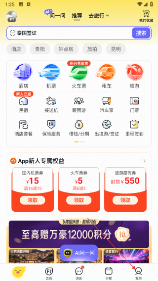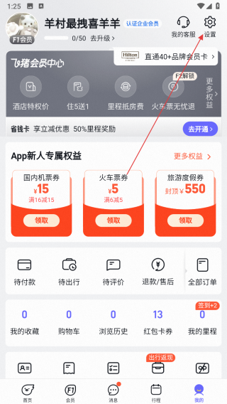 1、打開飛豬旅行APP,點(diǎn)擊底部導(dǎo)航欄我的,進(jìn)入個(gè)人頁(yè)面。