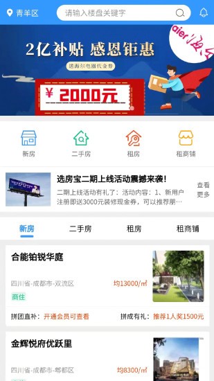 海量房源,拼團(tuán)用戶開通會(huì)員,可享受拼團(tuán)直補(bǔ),簽約24小時(shí)到賬,直接讓利于購(gòu)房者。