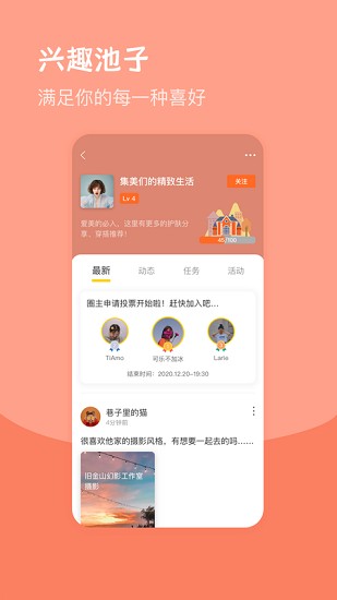 2、特色任務(wù):你可參與或者發(fā)布自己中意的趣味社交任務(wù),通過共同完成任務(wù)認(rèn)識更多的人結(jié)交更多志趣相投的朋友。