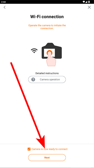 4、當(dāng)相機(jī)準(zhǔn)備好連接后,勾選選項(xiàng)并點(diǎn)擊Next進(jìn)行下一步連接操作。