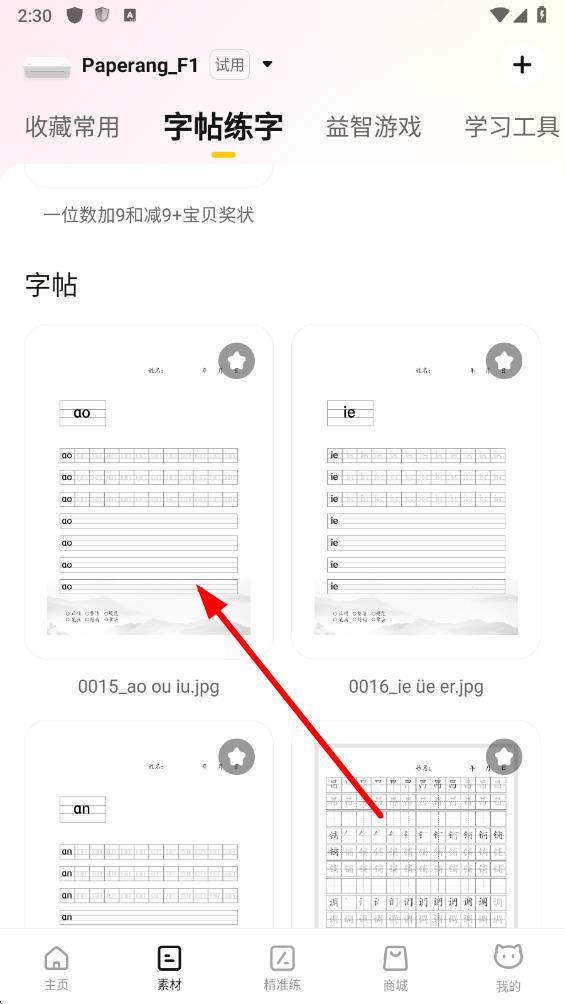 3、在字帖列表里,選擇你想要打印的字帖圖片,點(diǎn)擊進(jìn)入字帖詳情。
