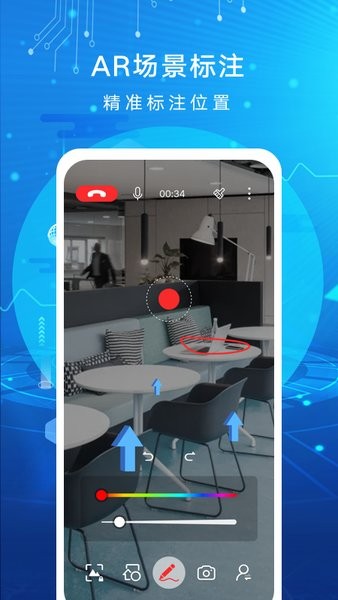 ar遠(yuǎn)程協(xié)作是將視頻通話與ar空間識別技術(shù)結(jié)合的應(yīng)用,通過遠(yuǎn)程共享求助者手機(jī)屏幕,并提供箭頭標(biāo)注、涂鴉等互動(dòng)方式,在真實(shí)環(huán)境下遠(yuǎn)程幫助解決問題,提高溝通效率。