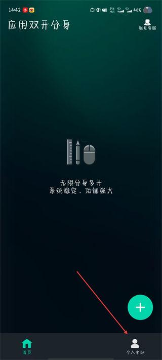 1、打開應(yīng)用雙開分身應(yīng)用,點(diǎn)擊右下角個(gè)人中心選項(xiàng),進(jìn)入個(gè)人中心頁面。