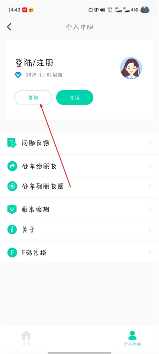 2、在個(gè)人中心頁面,點(diǎn)擊登陸/注冊區(qū)域的登陸選項(xiàng),進(jìn)入一鍵登錄頁面。