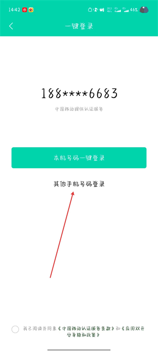 3、在一鍵登錄頁面,點(diǎn)擊其他手機(jī)號碼登錄選項(xiàng),進(jìn)入登錄注冊頁面。