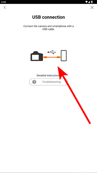4、使用USB數(shù)據(jù)線將相機(jī)和智能手機(jī)連接起來(lái),根據(jù)應(yīng)用內(nèi)的提示完成后續(xù)連接步驟即可完成連接。