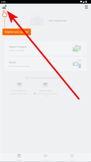 1、打開(kāi)Camera Connect應(yīng)用,點(diǎn)擊左上角的添加相機(jī)圖標(biāo)。