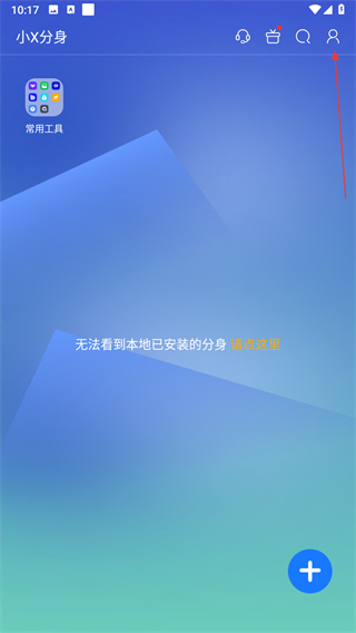1、打開小X分身應用,進入主界面后點擊右上角的個人圖標。