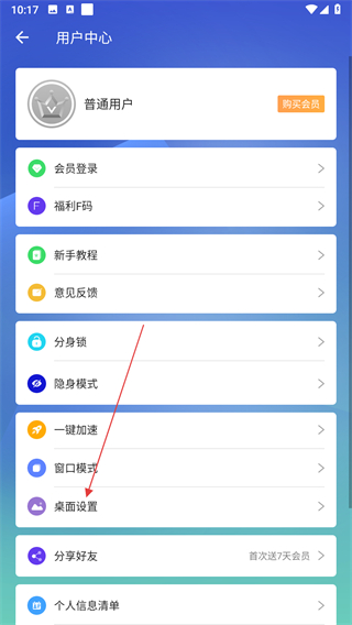 2、在用戶中心頁面點擊桌面設置選項,進入桌面設置界面。