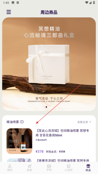 1、打開Flow冥想APP,進入周邊商品頁面,找到想要購買的商品并點擊。