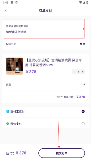 4、進入訂單支付頁面,填寫收貨地址和配送方式,選好支付方式,點擊提交訂單并完成支付。