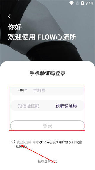 3、在登錄頁面勾選協(xié)議,輸入手機號,獲取并輸入短信驗證碼后,點擊登錄。