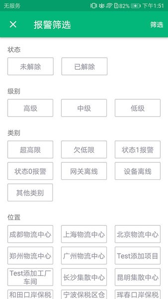 1、可以自行篩選報(bào)警類別,以便能更高效的查看和了解;