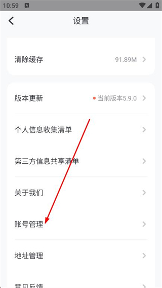 2、在設(shè)置頁面中,向下滑動找到并點擊賬號管理。