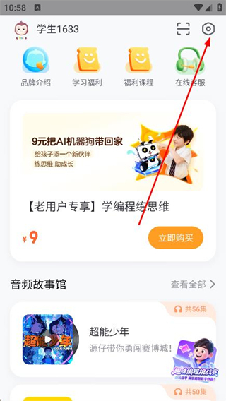 1、打開猿編程,點擊右上角齒輪狀的設(shè)置圖標(biāo)。