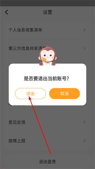 4、在提示框中點擊退出按鈕,即可完成賬號退出登錄。