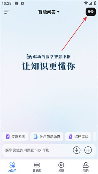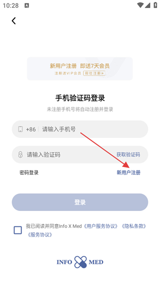 1、打開(kāi)Info X Med APP,進(jìn)入主界面,點(diǎn)擊右上角的登錄按鈕。