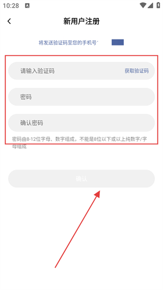 4、輸入驗(yàn)證碼,再設(shè)置密碼,確認(rèn)密碼后點(diǎn)擊確”,完成賬號(hào)注冊(cè)。