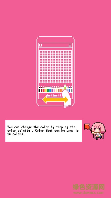 dotpict采取的是右手移動(dòng)選中網(wǎng)格,左手再點(diǎn)擊畫(huà)板下方巨大的dot!鍵上色的操作方式。這個(gè)方式可以減少了手指作畫(huà)誤觸的幾率,使作畫(huà)能更加精確。