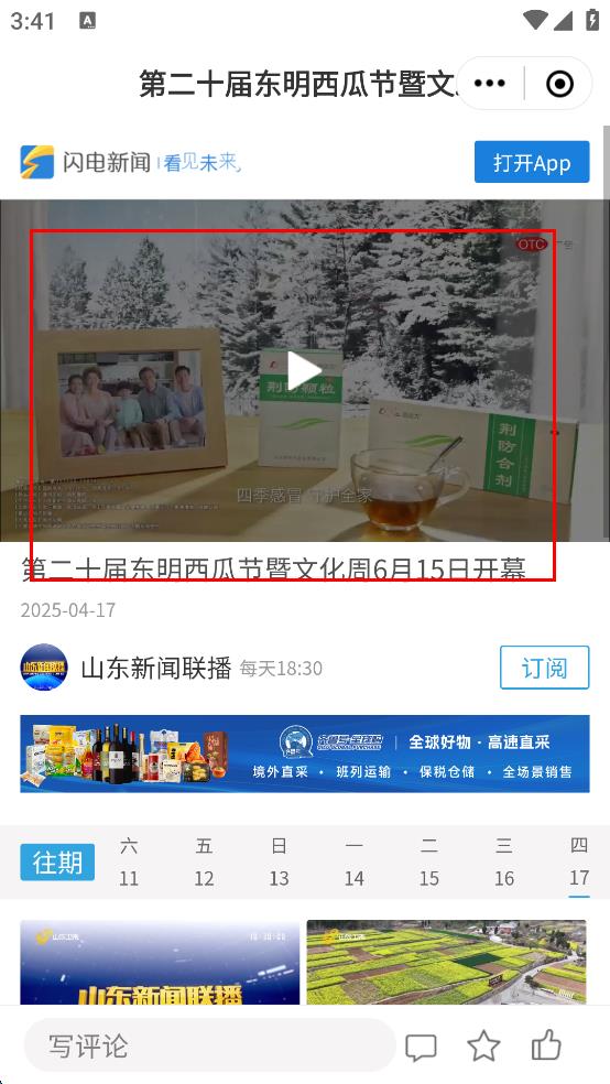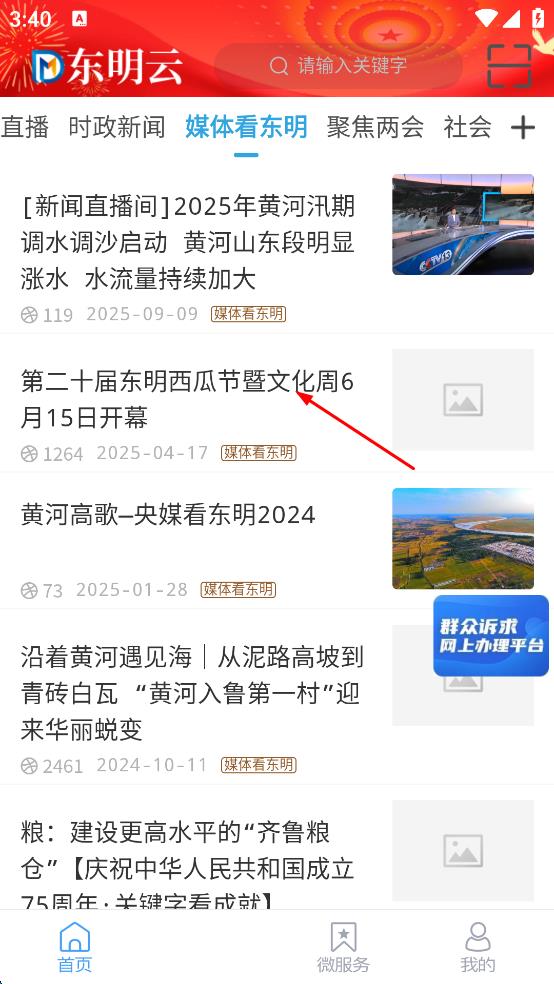 3、在媒體看東明相關頁面點擊第二十屆東明西瓜節(jié)暨文化周6月15日開幕新聞標題。