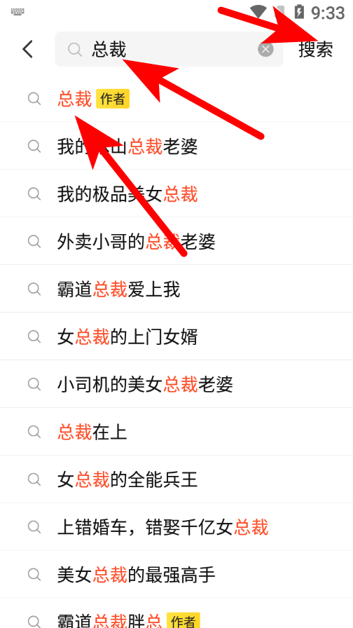 2、在搜索界面輸入作者名稱(chēng),點(diǎn)擊搜索按鈕,進(jìn)入搜索結(jié)果頁(yè)。