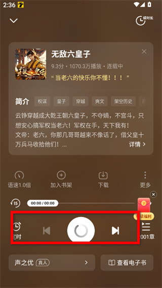 3、在書(shū)籍聽(tīng)書(shū)界面,點(diǎn)擊播放按鈕,即可開(kāi)始聽(tīng)書(shū)。