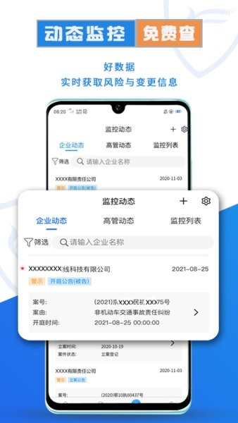 可查看企業(yè)失信信息、被執(zhí)行人、裁判文書、經(jīng)營(yíng)異常、行政處罰、抽查檢查、開庭公告、司法拍賣等信息,綜合判斷企業(yè)風(fēng)險(xiǎn)狀況,為商業(yè)合作提供可行性參考。