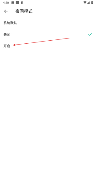 4、在夜間模式設(shè)置界面,選擇開啟選項(xiàng),即可成功開啟夜間模式。