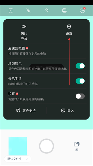 1、打開vFlat掃描儀應(yīng)用,點(diǎn)擊界面右上角的三點(diǎn)菜單按鈕。