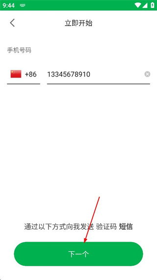 3、確認手機號碼填寫無誤后,點擊下一個按鈕,觸發(fā)驗證碼的發(fā)送操作。