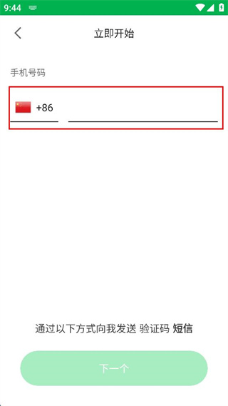 2、在手機號碼填寫區(qū)域,確認國家代碼為+86后,輸入對應的手機號碼信息。