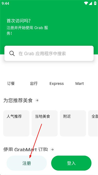 1、打開Grab軟件進入主界面,找到注冊選項并點擊,跳轉至立即開始的手機號碼填寫頁面。