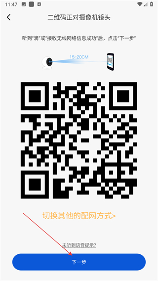6、將二維碼正對(duì)攝像機(jī)鏡頭,點(diǎn)擊下一步,即可完成綁定。