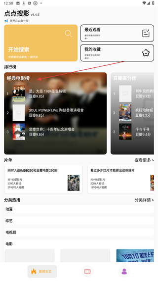 1、打開點點搜影APP,進入首頁點擊經(jīng)典電影榜的區(qū)域。