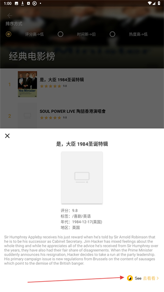 2、在經(jīng)典電影榜的頁面內(nèi),選擇并點擊要播放的電影名稱。