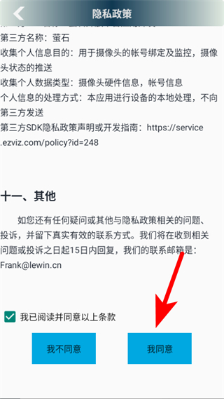 2、在登錄頁面點擊隱私政策,閱讀后勾選我已閱讀并同意以上條款,點擊我同意。