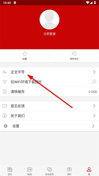 2、在個(gè)人中心界面,點(diǎn)擊正文字號(hào)選項(xiàng),進(jìn)入正文字號(hào)設(shè)置界面。