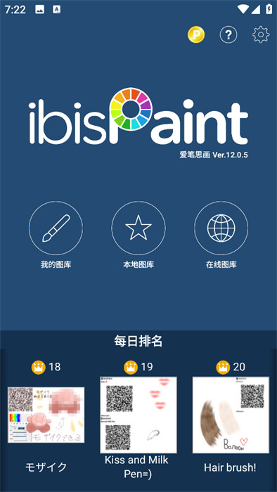 1、打開ibisPaint應(yīng)用,點擊界面中的我的圖庫圖標,進入個人藝術(shù)作品管理頁面,可查看、編輯已有作品或創(chuàng)建新作品。