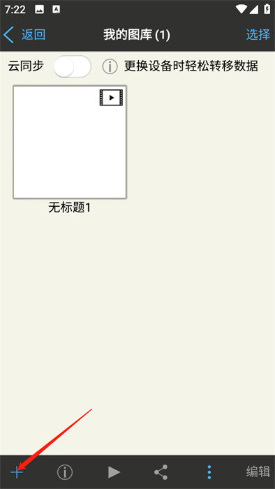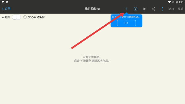 2、在我的圖庫界面,點擊右上角的+按鈕,展開新建功能菜單,準備選擇創(chuàng)建或?qū)胱髌返姆绞健?