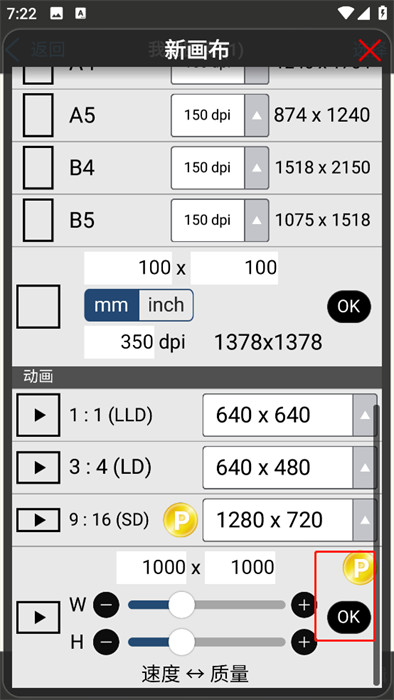 3、在調(diào)整完成尺寸和畫面之后,點擊下方的【ok】即可看到正常的畫布;