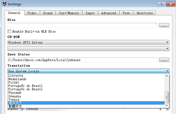 2、Yabause模擬器與BIOS的目錄不能有中文。
