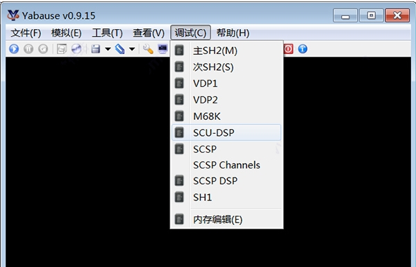 7、調(diào)試功能:主SH2(M)、次SH2(S、 VDPT、 VDP2、 M68K、 scu-dsp、 SCSP、 SCSP Channels、 SCSP DSP、 SHI、內(nèi)存編輯(E)。